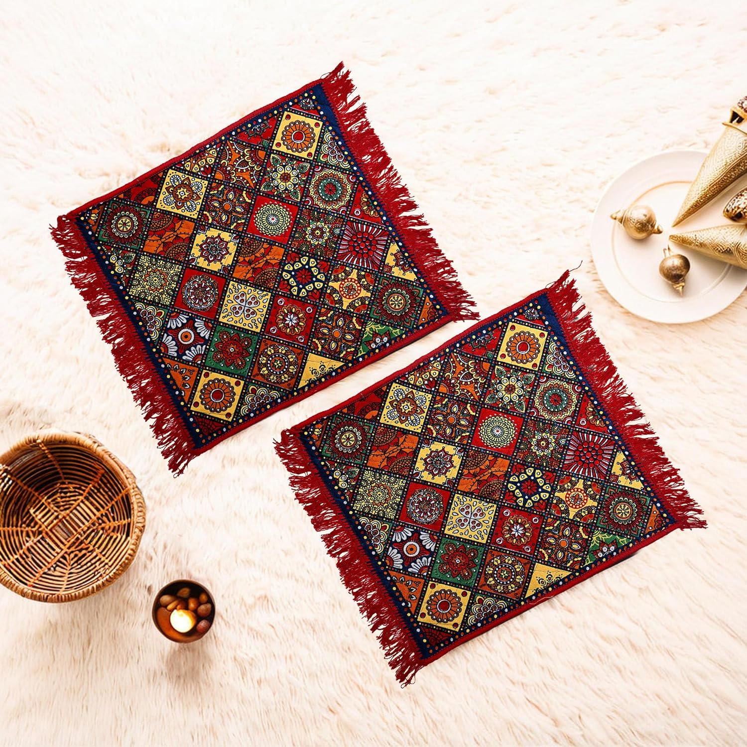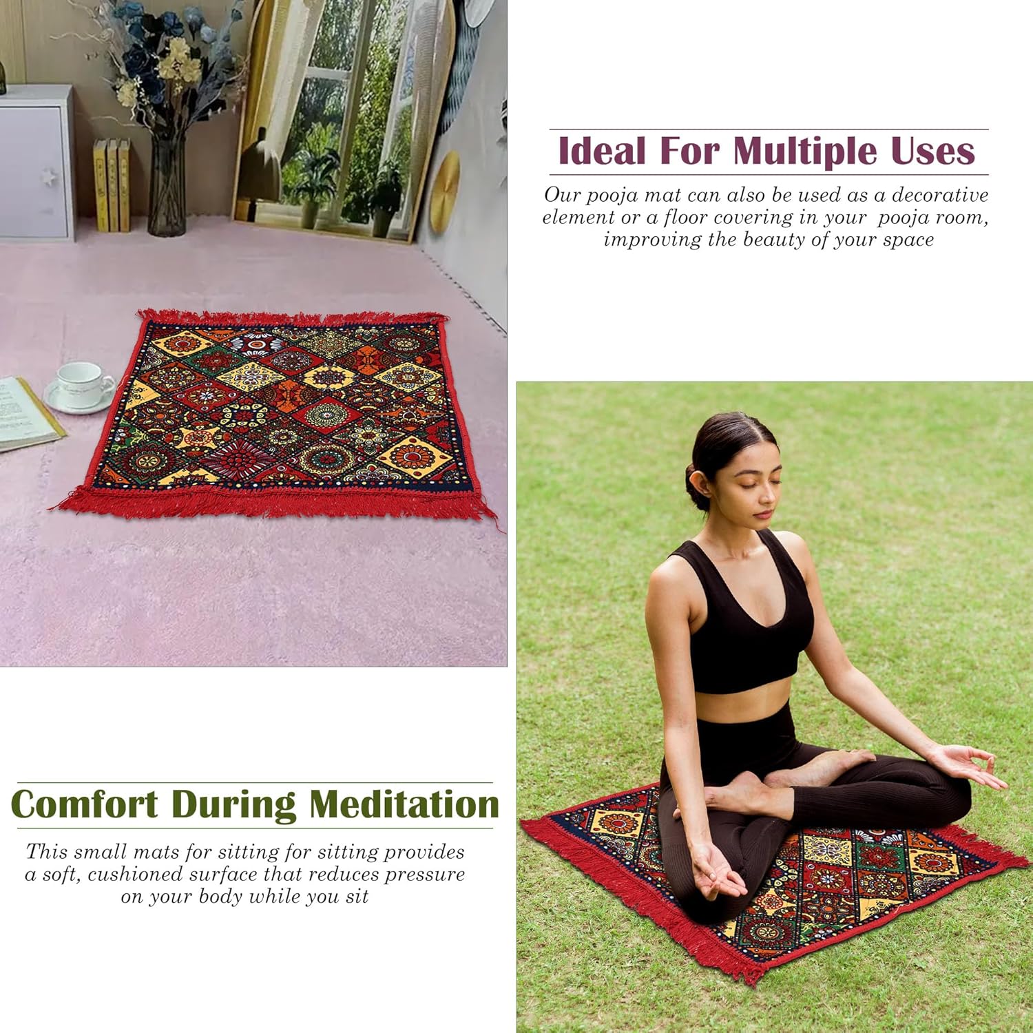 Pack of 2 Velvet Finish Pooja Mats – Traditional Rangoli Design Aasan for Floor Seating in Home Mandir