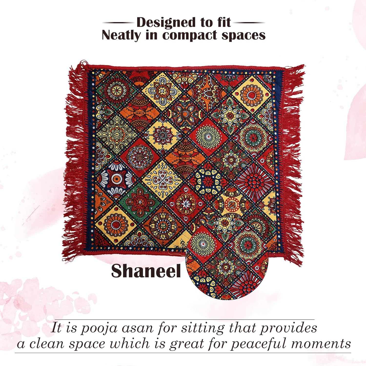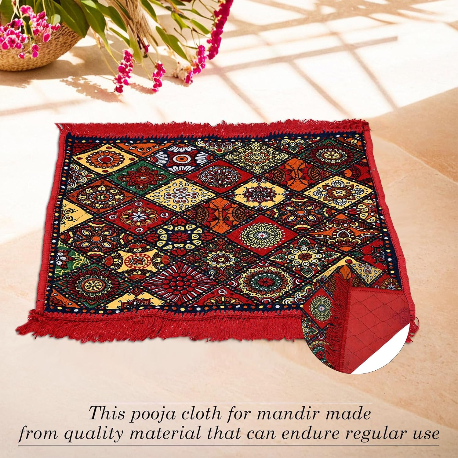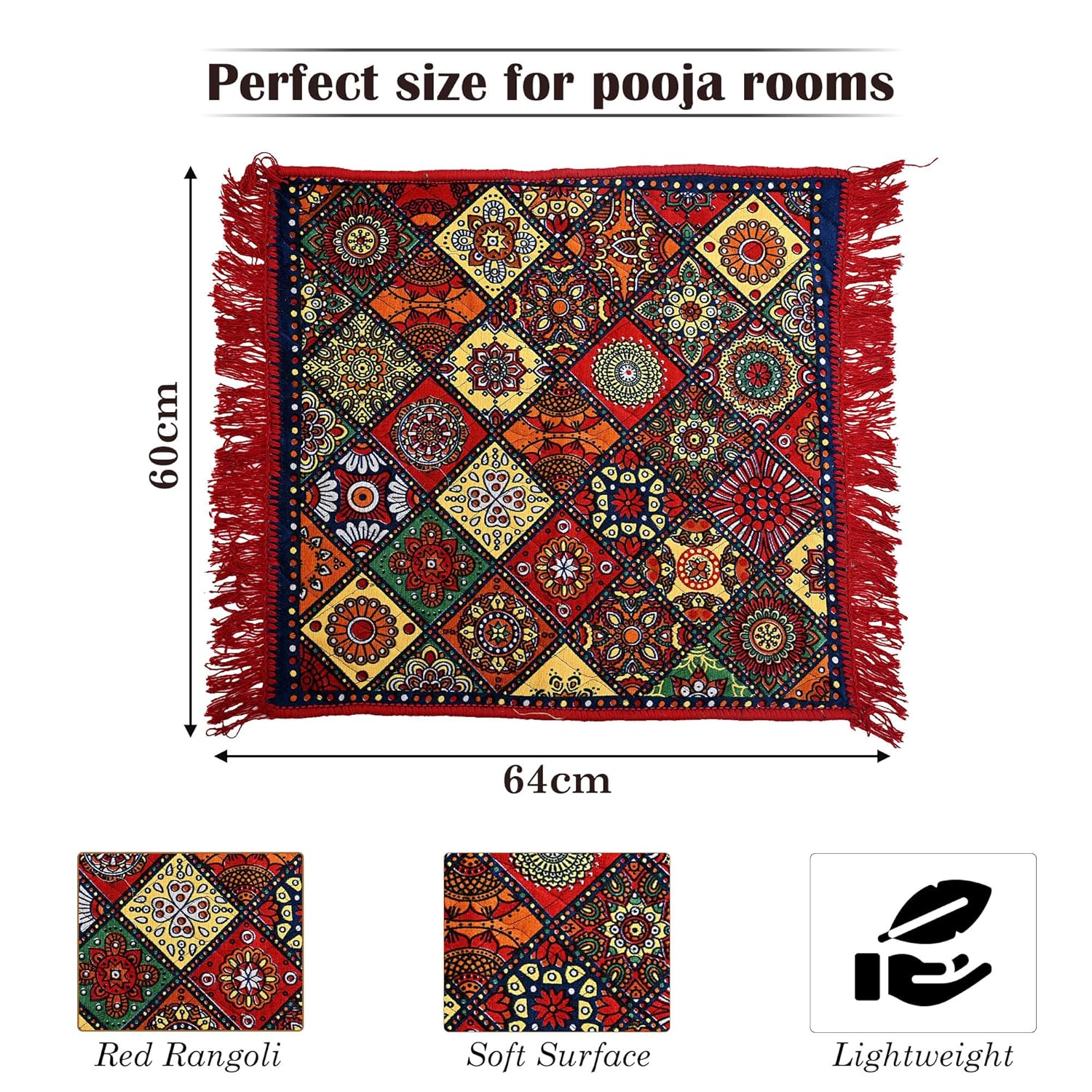 Enhance your pooja experience with this pack of two velvet finish mats, crafted for comfort and elegance. Each mat features a traditional rangoli print, adding a beautiful touch to your home mandir and rituals. Ideal for comfortable floor seating during pooja, meditation, or special ceremonies.
